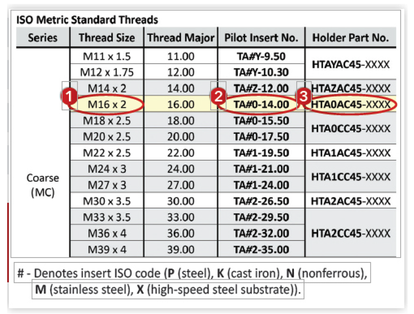1- Izberite velikost navoja iz izbirnega vodnika.